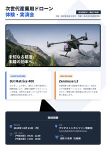 このたび弊社では、次世代産業用ドローンの体験・実演会を開催いたします。